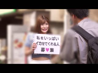 紹介: この日の撮影を楽しみにして来てくれたのは、23歳・Jカップの「堀北実来」ちゃん!なんと実来ちゃん本人が自力で本日の‘男優さがし’をする事になってしまった!!‘私をいっぱいイカせてくれる人募集’の看板を持った実来ちゃんに声をかけられた素人さんは、突然の夢みたいな出来事に驚くばかりだ…。撮影スタジオにやってきた一人目のお兄さんは、戸惑いながらももの珍しげにJカップの巨乳をモミモミする。気持ち良さそうな実来の反応に安堵したお兄さんは、ぎこちなくも慎重に愛撫を続けると手マンで絶頂させるのだった。誠実そうな男性の態度に好感を抱いた実来だが、遠慮がちな様子に物足りなさを感じてついつい得意のフェラを披露!思いがけずに暴発射精させてしまい、あえなく挿入合体しそこねるのだった。ムラムラが抑えきれない実来は、グイグイと積極的な二人目のお兄さんに目をきらきらさせる。貪るようにキスする2人は恋人同士みたいに意気投合し、実来のあえぎ声を震わせる程いろんな体位でイカされたのだった!性欲が爆発した実来はもっと激しいSEXがしたくなり、すっかり暗くなった大通りで3人目の素人男性をゲットした!見立てどおり、男性ホルモンダダ漏れのオオカミのような男を引き当てた実来は、ベッドで豹変した男に身体を預けると乳首を吸われてイってしまった。ヤル気に満ちあふれた男は、実来を素っ裸にすると充血したマ○コを慣れた様子で手マンして‘おもらし’させてしまう!M字開脚した実来の太ももが男の両足で押さえつけられ、電マで何度もイカされて極限状態まで発情した実来は、男のチ○ポでハメ潮吹きながら絶叫して何度も何度もイカされまくるのだった!!